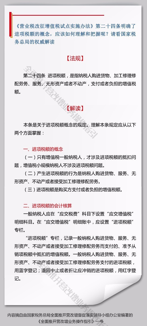 营业税改征增值税试点实施办法》第二十四条明确了进项税额的概念,应该如何理解和把握呢?请看国家税务总局的权威解读~~~