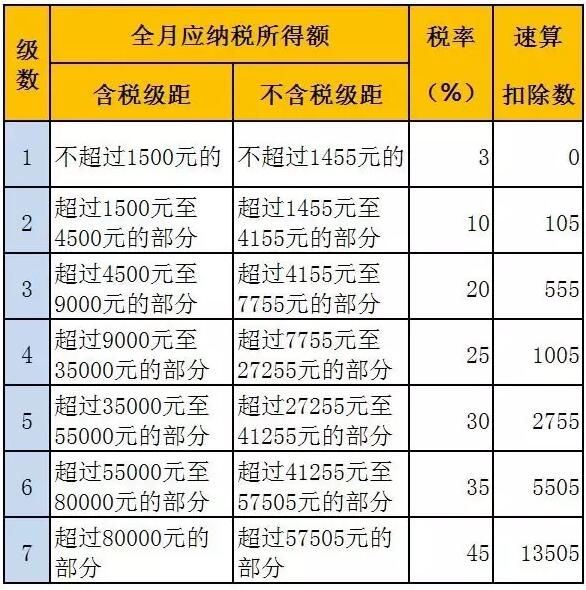 2.如果个人当月工资薪金所得低于规定费用扣除额的,其适用公式如下: