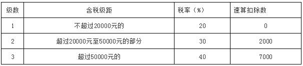 不含税劳务报酬收入所对应的税率和速算扣除数为下表所示: