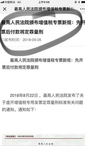 近日,一篇题为“先开票后付款将定罪量刑”文章在各个微信群、朋友圈内频繁传播,引起许多不明就里的朋友恐慌。