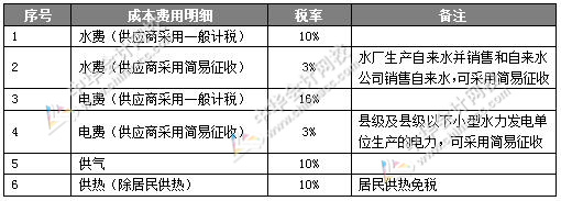 小规模纳税人提供水、电、燃气费用的税率均为3%。一般纳税人处取票情况如下: