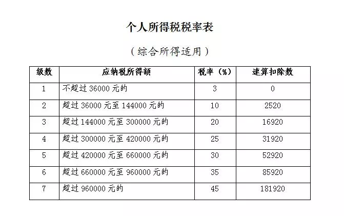 附件:个人所得税税率表(综合所得适用)