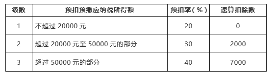 (1)企业预扣预缴税款=(劳务报酬所得-减除费用)*预扣率-速算扣除数