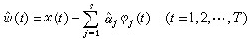 ,式中ω(t)是均值为零的平稳序列,α1,α2,…,αs是未知参数,φ1(t),φ2(t),…,φs(t)是已知的函数,上式称为线性回归模型,它的统计分析已被研究得比较深入。前面叙述的降雨量一例,便可用此类模型描述。回归分析的内容包括:当ω(t)的统计规律已知时,对参数α1,α2,…,αs进行估计,预测x(T+l)之值;当ω(t)的统计规律未知时,既要估计上述参数,又要对ω(t)进行统计分析,