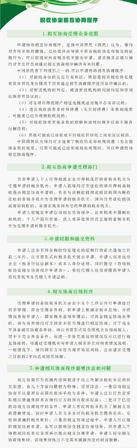税收协定服务企业“走出去”,税收协定服务“走出去”,您了解税收协定相互协商程序了吗?小编为您整理了税收协定相互协商的业务范围、申请受理部门、申请时限和提交材料及需要注意的问题。快来看看吧~