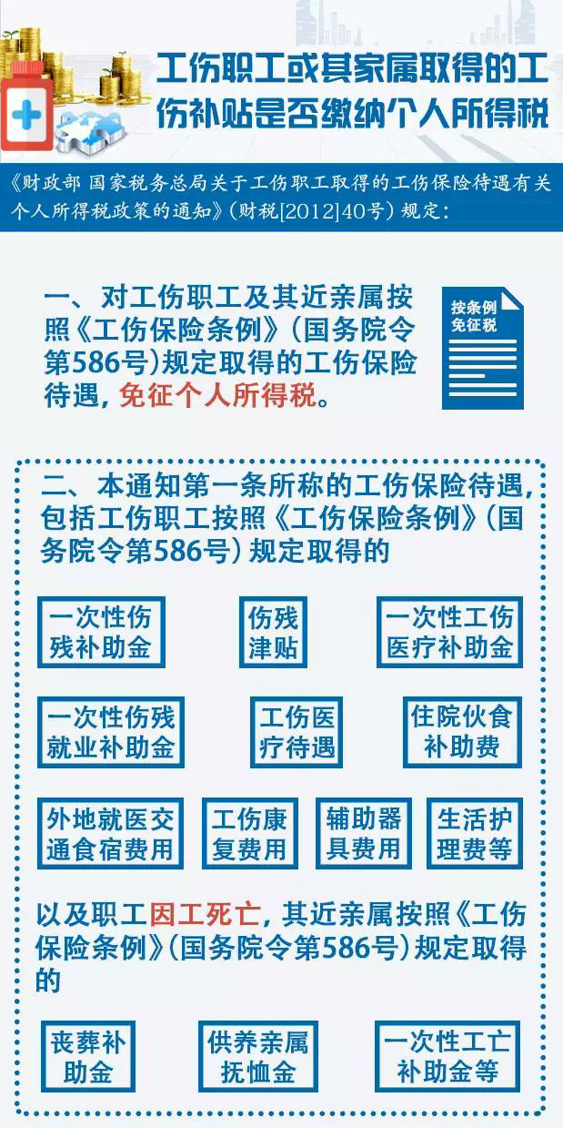工伤职工或其家属取得的工伤补贴是否缴纳个人所得税?小编搜集了相关政策规定,希望对您有所帮助,详情如下图: