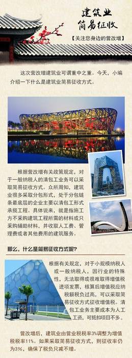 这次营改增建筑业可谓重中之重,今天小编介绍一下什么是建筑业简易征收方式。