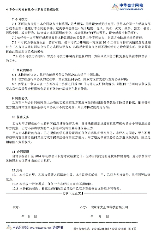 初级会计职称“实验班”协议书