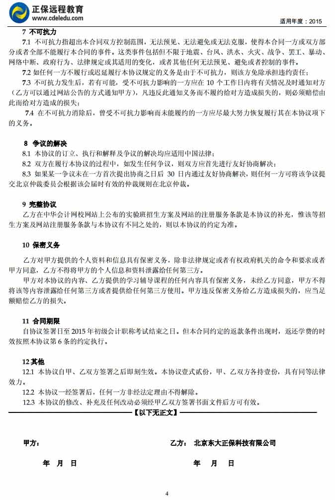 初级会计职称“实验班”协议书