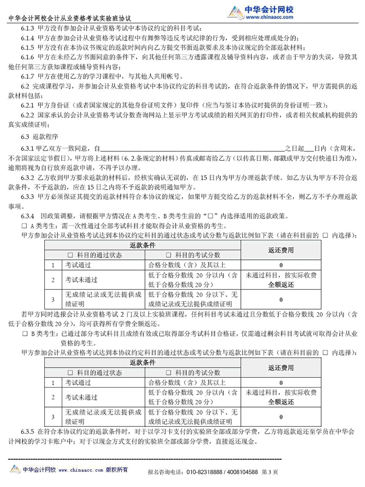 会计从业“实验班”协议书