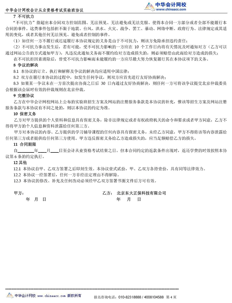 会计从业“实验班”协议书