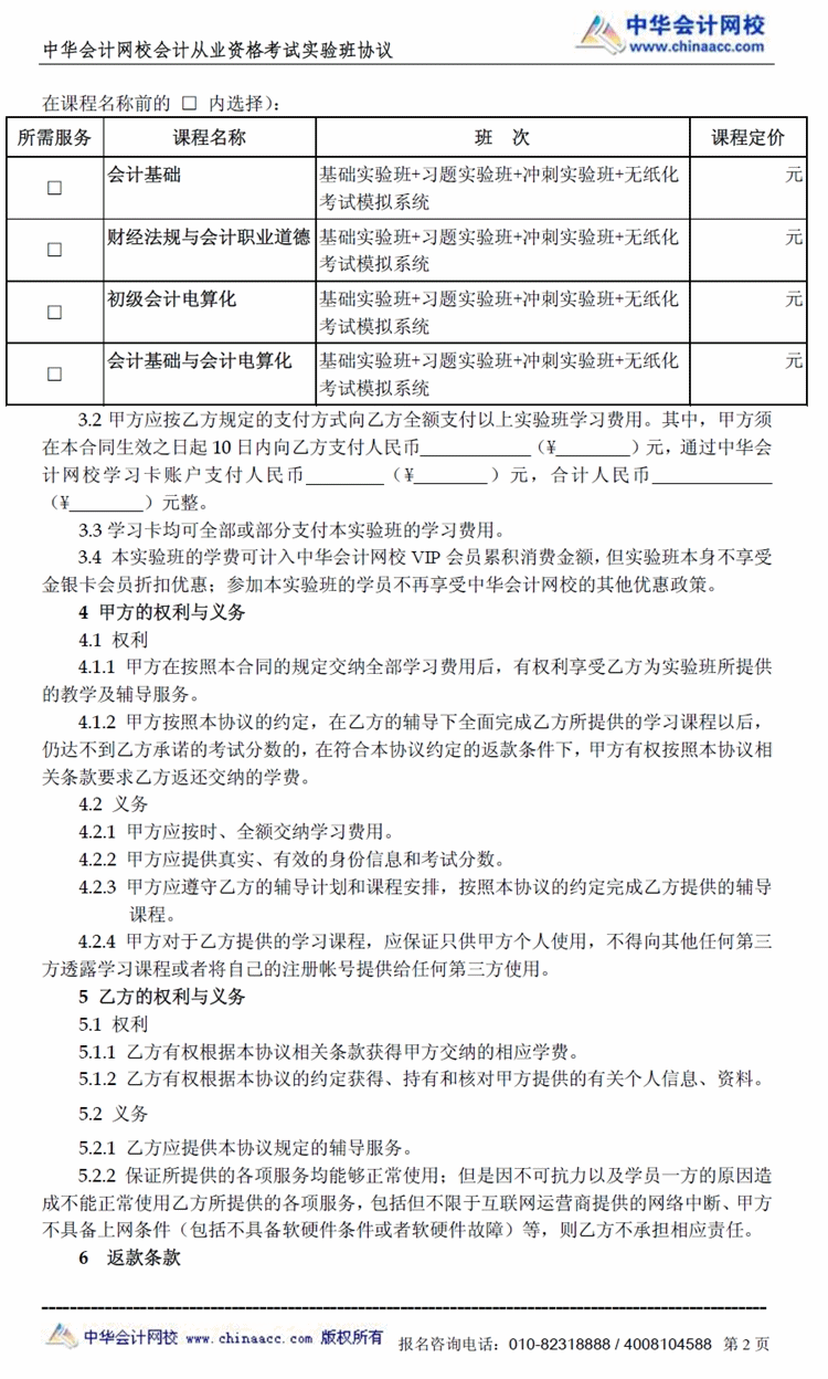 会计从业“实验班”协议书