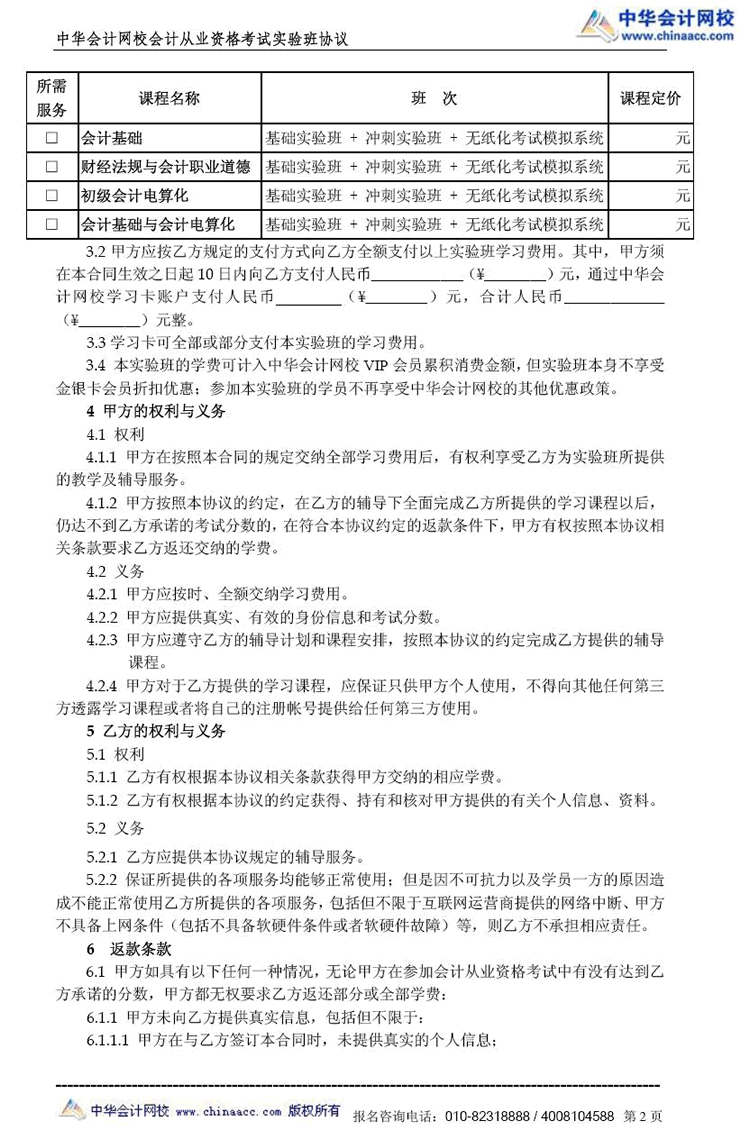会计从业“实验班”协议书