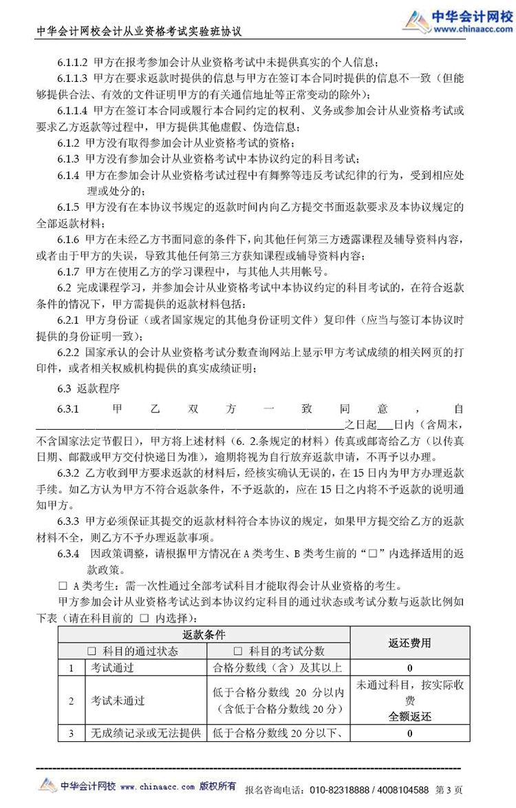会计从业“实验班”协议书