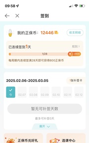 每连续四周签到可额外获得800正保币,达成条件后重新累计;完成任务获得对应正保币。