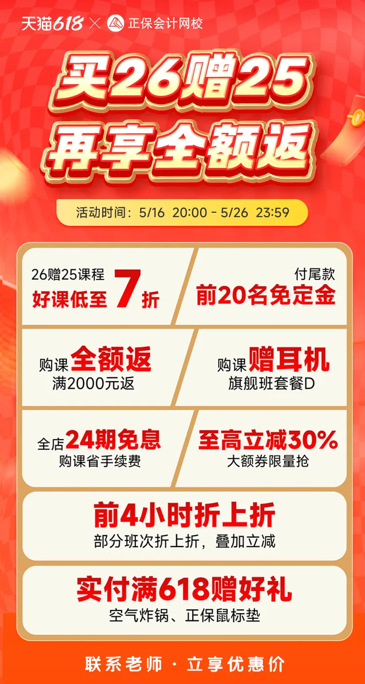 天猫6◆18抢先购 优惠尽在“正保会计网校旗舰店”