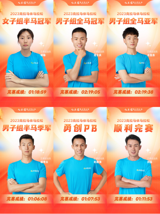 11月5日,正保运动员管油胜以02:51:04获得2023中国山马越野系列赛黔江站42公里组别冠军!克拉玛依马拉松,范士庆、王佳浩分别以02:19:05、02:19:38的成绩包揽马拉松冠亚军!杨博文以01:06:08获得半马组季军,刘磊、杞朝海分别以01:11:53、01:07:53顺利完赛,且杞朝海打破个人半马PB!00后小将胡杨以01:18:59获得半马女子组冠军!恭喜奋力一搏的正保运动员们再创佳绩!