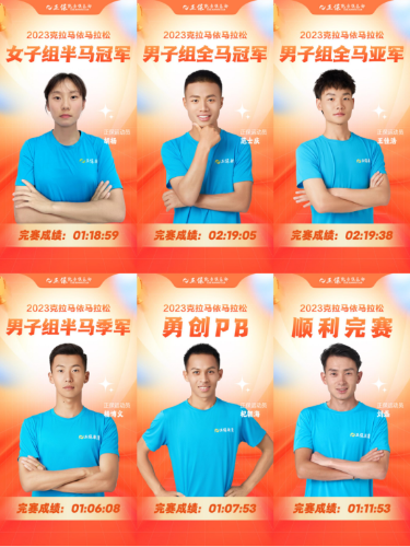 全马男子组,范士庆、王佳浩位于第一集团,赛程过半后拉开与他人的距离,最终依次冲线,分别以02:19:05、02:19:38的成绩包揽马拉松冠亚军!半马女子组别赛事,俱乐部小将胡杨开枪领跑,不断扩大优势;半马男子组别,杨博文一马当先,紧紧追逐男子领先选手,杞朝海、刘磊紧随其后。最终00后小将胡杨以01:18:59获得半马女子组冠军!杨博文以01:06:08获得半马组季军,刘磊、杞朝海分别以01:11:53、01:07:53顺利完赛,杞朝海打破个人半马PB!
