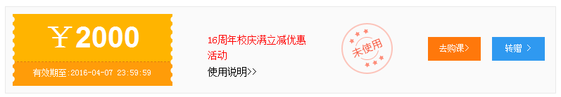 1、优惠券有效期至2016年4月7日,此次折扣优惠券不与网校其他优惠活动、VIP折扣同时享受;