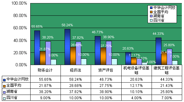 正保会计网校2004年注册资产评估师考试通过率 ( 柱状对比图 )