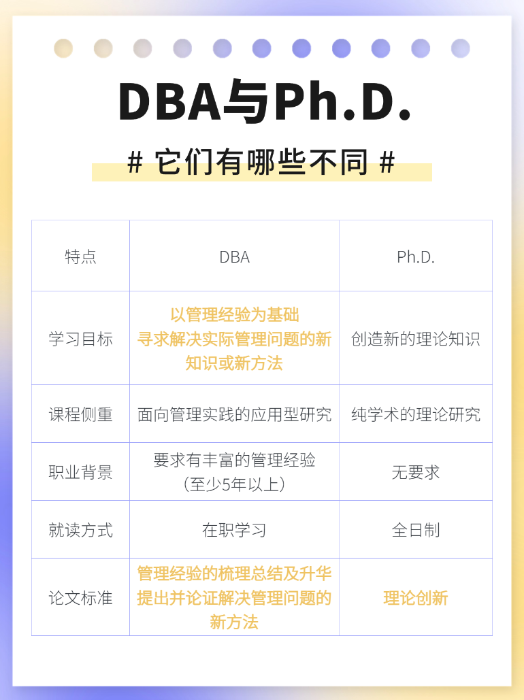 两个学位的受众也不同:Ph.D.适合培养研究人员和教授,而DBA课程则面向希望在公司内部带来变革的专业人士。