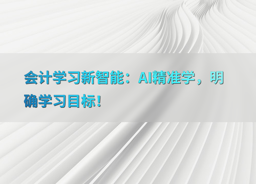 在当今快速发展的科技时代,AI精准学已经成为会计学习的新趋势。