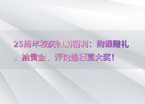 25周年校庆特别福利:购课赠礼、抽黄金、评论盖楼赢大奖!
