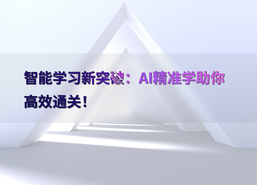 如何利用AI精准学提高学习效率?答:通过AI精准学,学员可以获得个性化的学习方案,跳过已掌握的内容,专注于薄弱环节,从而提高学习效率。同时,量化每日学习任务和智能测试功能,进一步确保学习的针对性和有效性。