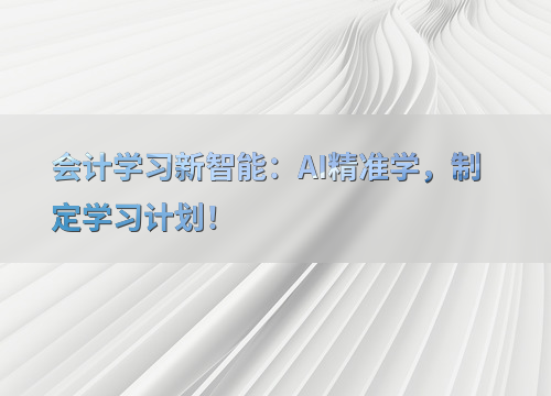 在当今快速发展的科技时代,AI精准学已经成为会计学习的新趋势。