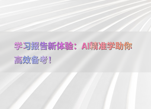 学习报告/效果追踪: AI精准学提供千人千面的针对性学习报告,实时监控你的掌握情况,调整学习任务,学习效果一目了然。宝子们快冲!用AI精准学,让你学得精,练得准,省时提效30%-50%!