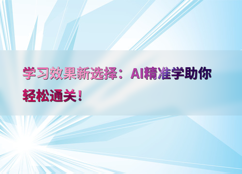 如何利用AI精准学提高学习效率?答:通过AI精准学,你可以获得个性化的学习路径,系统会根据你的学习进度和掌握情况,自动调整学习内容和难度。例如,如果你已经掌握了某个知识点,系统会跳过相关内容,直接进入下一个需要加强的部分。这样可以大大提高学习效率,减少无效学习时间。