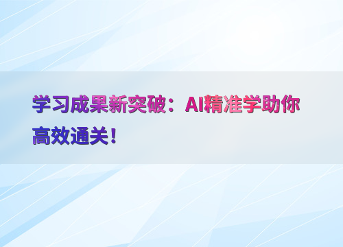 如何在繁忙的工作中坚持使用AI精准学进行学习?答:对于忙碌的专业人士来说,合理安排时间是关键。建议每天抽出固定的时间段进行学习,比如早晨或晚上。同时,利用碎片化时间,如通勤途中,通过手机APP完成小测验或复习知识点。这样不仅能保持学习的连续性,还能有效缓解工作压力,实现工作与学习的双赢。