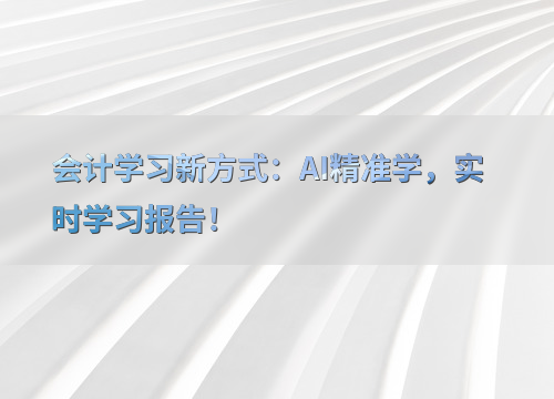 AI精准学适合哪些人群?答:AI精准学适合所有希望提高学习效率的会计学员,无论是初学者还是有经验的专业人士。对于忙碌的职场人士来说,AI精准学可以帮助他们更有效地利用碎片化时间进行学习。
