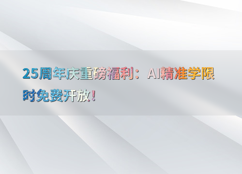 参加25周年庆活动有哪些额外福利?答:除了AI精准学的限时免费开放外,购买特定课程如中级会计、注会、税务师畅学旗舰班套餐D,还将限量赠送25周年校庆礼盒。此外,分享你与正保会计网校的故事并@官方账号,就有机会赢得黄金三件套等丰厚奖品。