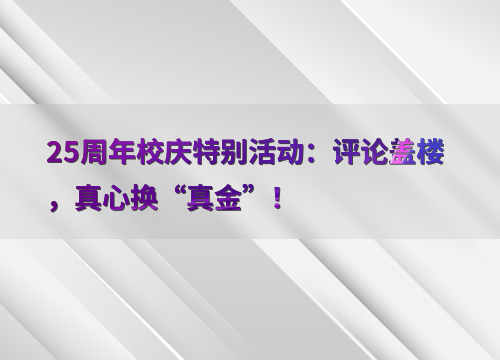 25周年校庆特别活动:评论盖楼,真心换“真金”!
