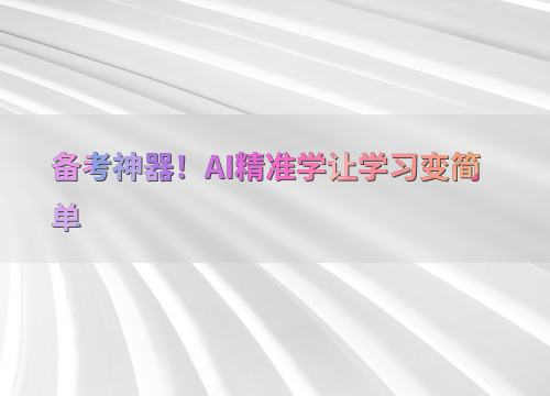 如何利用AI精准学提升考试通过率?答:通过AI精准学,你可以获得个性化的学习方案,系统会根据你的学习进度和掌握情况,推送最适合你的学习内容。这样不仅能节省时间,还能显著提升学习效果。