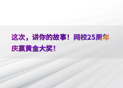 这次,讲你的故事!网校25周年庆赢黄金大奖!