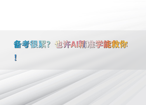 1. AI精准学真的能提高学习效率吗?答:是的,AI精准学通过智能化的分析和推荐,能够帮助考生更有效地利用时间。比如,智能测试 精准推题功能可以根据你的掌握情况,推送最适合你的练习题目,从而提高学习效果。