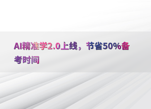 如何利用AI精准学2.0提高学习效率?答:通过AI精准学2.0系统的个性化推荐和智能分析,考生可以更高效地进行针对性练习,避免无效学习,从而节省大量备考时间。