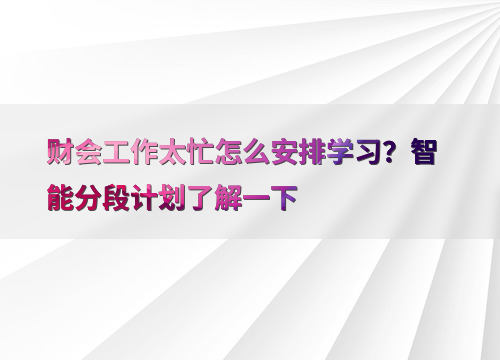 财会工作太忙怎么安排学习?智能分段计划了解一下