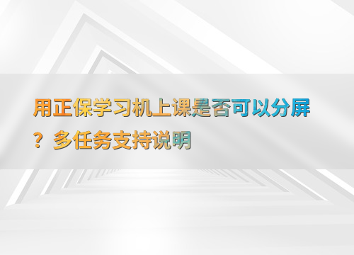 问:如何使用正保学习机进行多任务处理?答:只需简单设置,您就可以在正保学习机上同时运行多个应用程序。例如,您可以一边观看教学视频,一边查阅相关资料或进行练习题,所有操作都流畅自如。