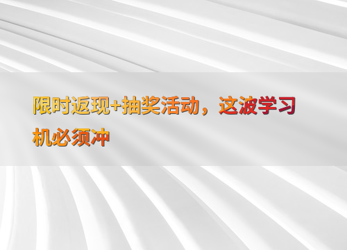 参加限时返现和抽奖活动的具体步骤是什么?答:访问正保财会学习机官网,了解活动详情并按照页面提示完成购买和参与抽奖的步骤,即可享受限时返现和抽奖机会。