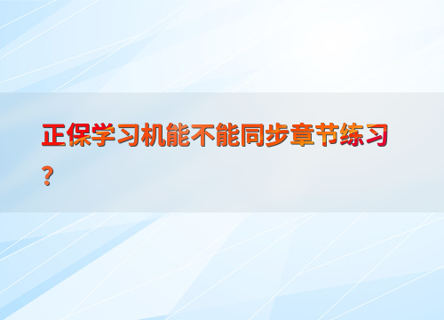 正保学习机能不能同步章节练习?