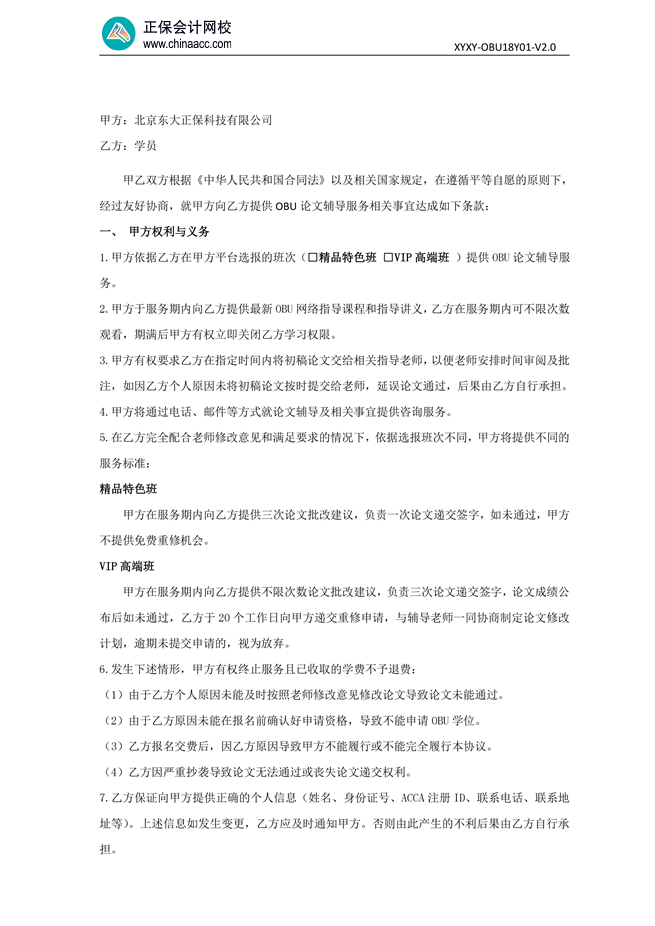 ACCA OBU论文辅导协议书