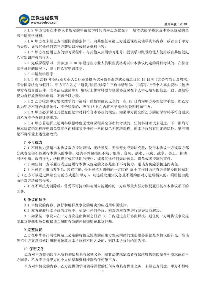 2018年银行职业资格无忧班协议书