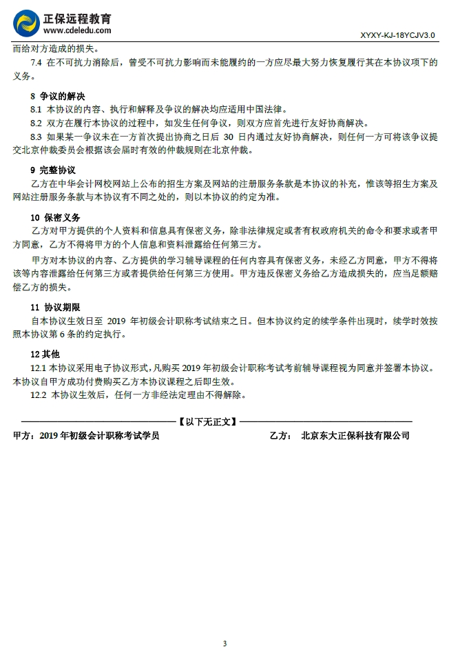 初级会计职称零基础通关班协议书