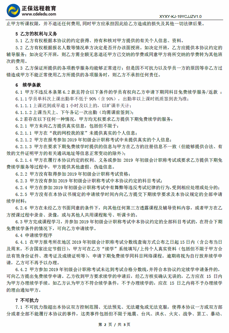 初级会计职称精英智能面授班协议书