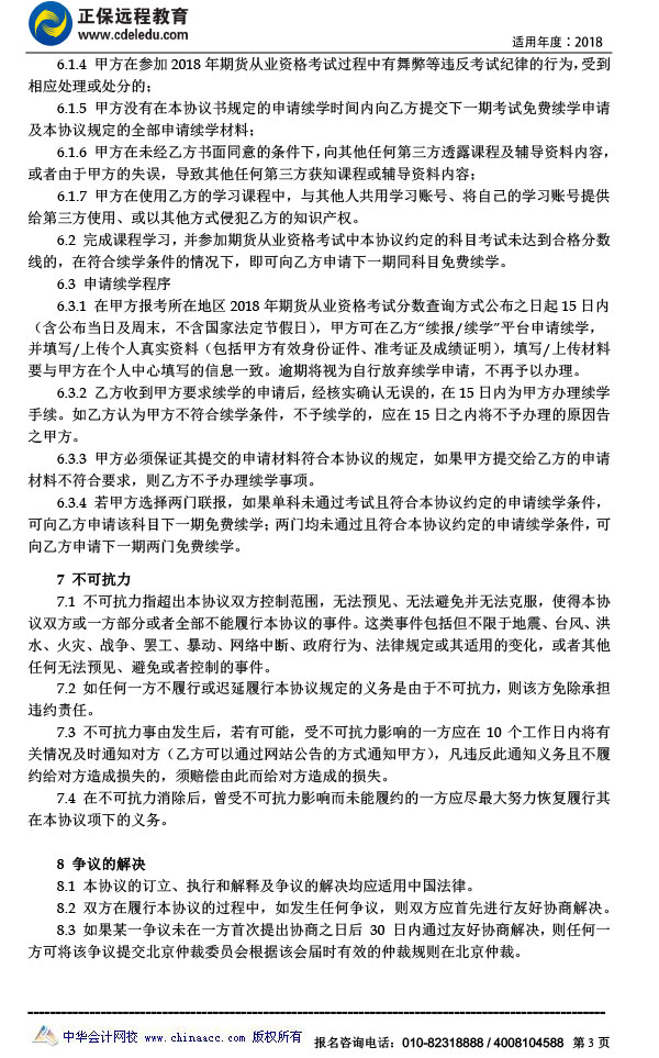 2018年期货从业实验无忧班协议书