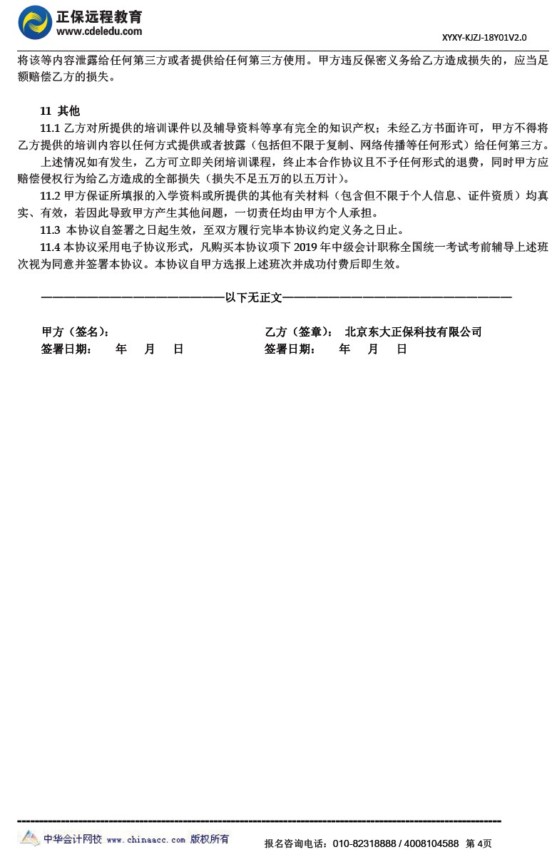 2019年中级会计职称精英孵化班协议书