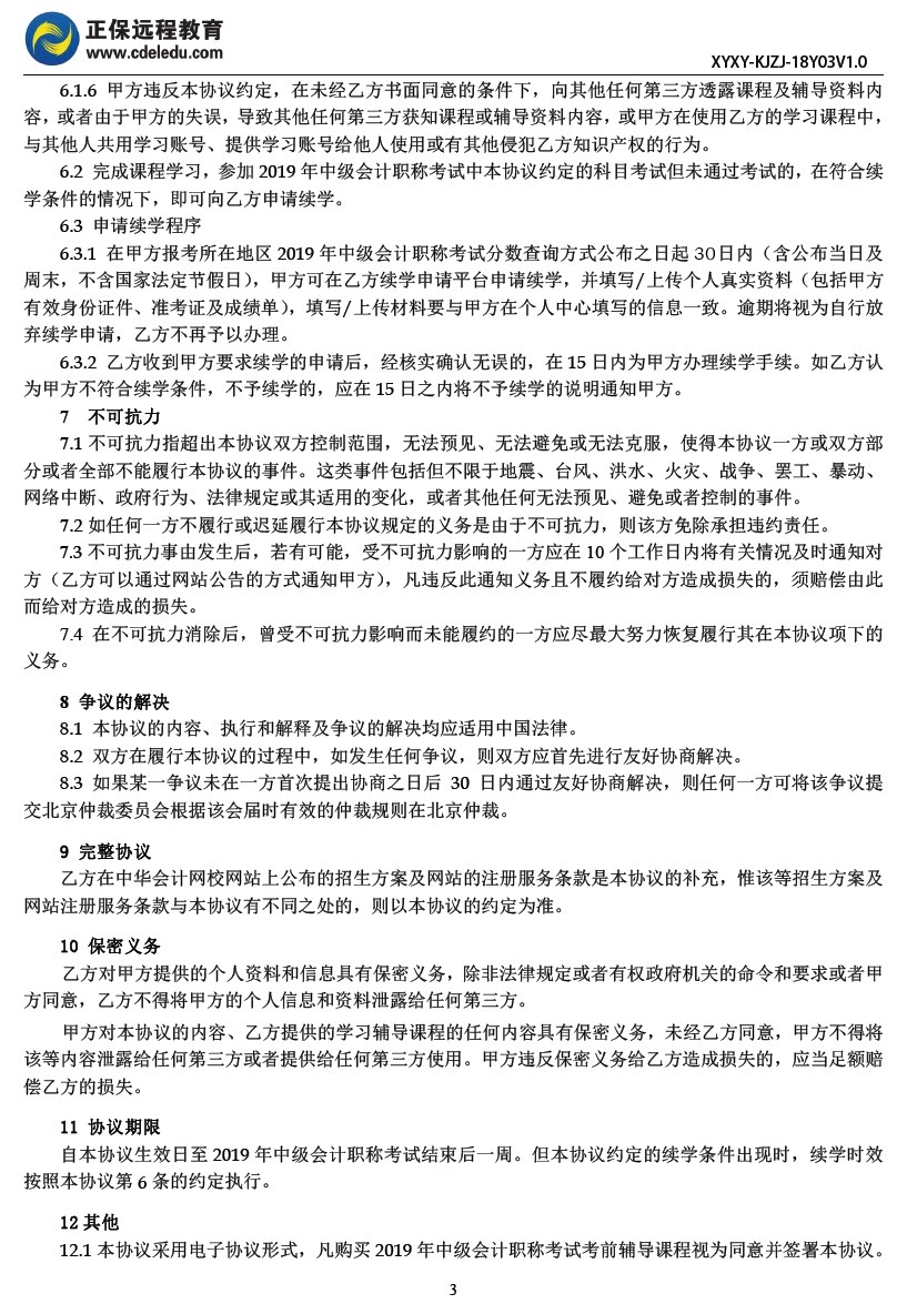 2019年中级会计职称续学保障协议书